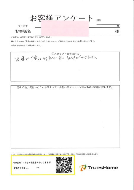 この度はアンケートの ご協力ありがとうございました。 当初は一括査定からのお問合せで 最初はオンライン面談からでした。 何度かお打ち合わせをさせて頂き 最終的に弊社をご用命頂きまして ありがとうございました。 荷物撤去、測量手続き、通行掘削承諾書の取得と ご契約から約4ヶ月、お引渡しまで 少し時間がかかりましたが 不明点にお答え頂くなど ご協力ありがとうございました。 お陰様で無事にお引渡しを迎えることができました。 今後、ご実家の売却などで タイミングがきましたら お気軽にご連絡ください。 引き続き宜しくお願い致します。
