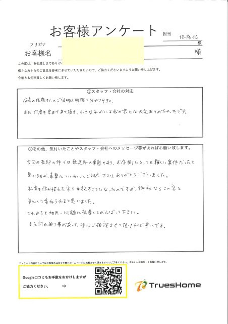 また何度も家まで来て頂き、小さな子がいる我が家には大変ありがたかったです。